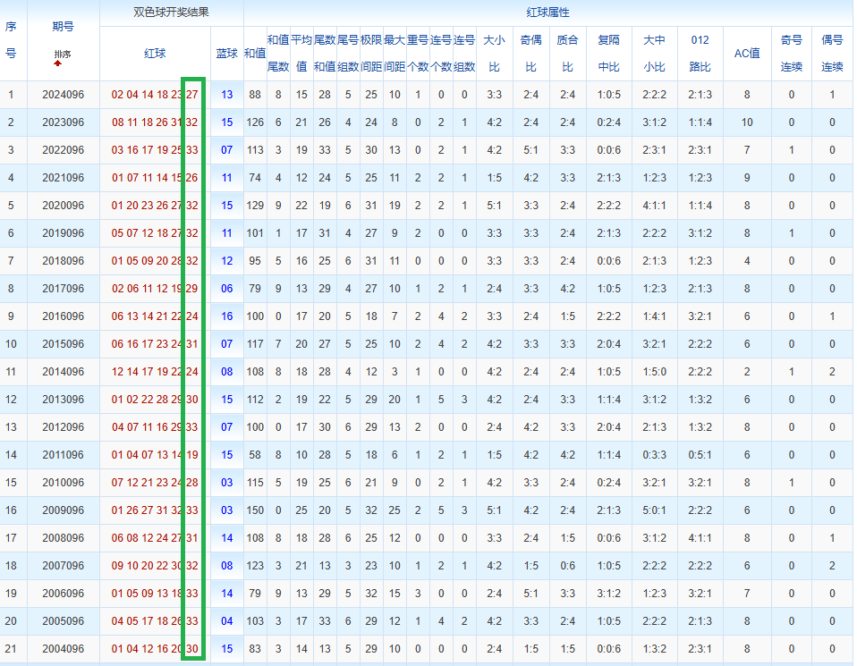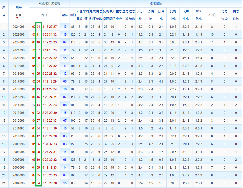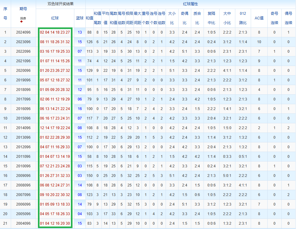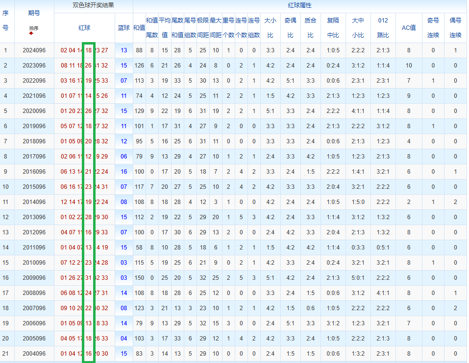 通过观察,我发现双色球往年同期的开奖数据与本期号码之间存在显著关联。具体来说,在红球中,从第一位至第六位,通常会有约4个位置上的数字与往年同期相同位置的号码一致;而蓝球号码中,也有多期开奖结果直接包含了往年同期的数字。因此,我们可以借助往年同期各位置上的号码,作为分析本期开奖情况的重要依据。在此基础上,还可结合往年同期的其他相关条件,进行综合性的号码组合推荐。