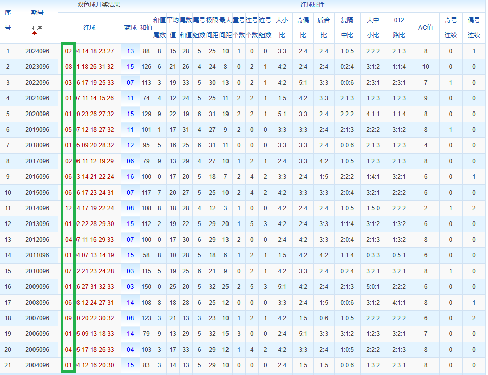 往年同期中选取出现次数靠前的数作为我们的分析对象,其数据有:01 32 12 等