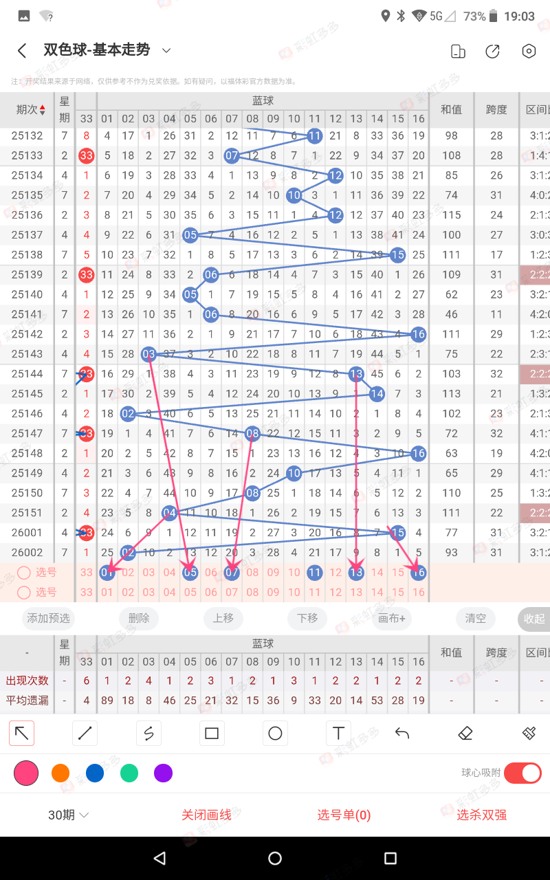 上期红5是30红6是32二个相加6尾,073-079-102-106期错,即003期我们02-12可以杀号