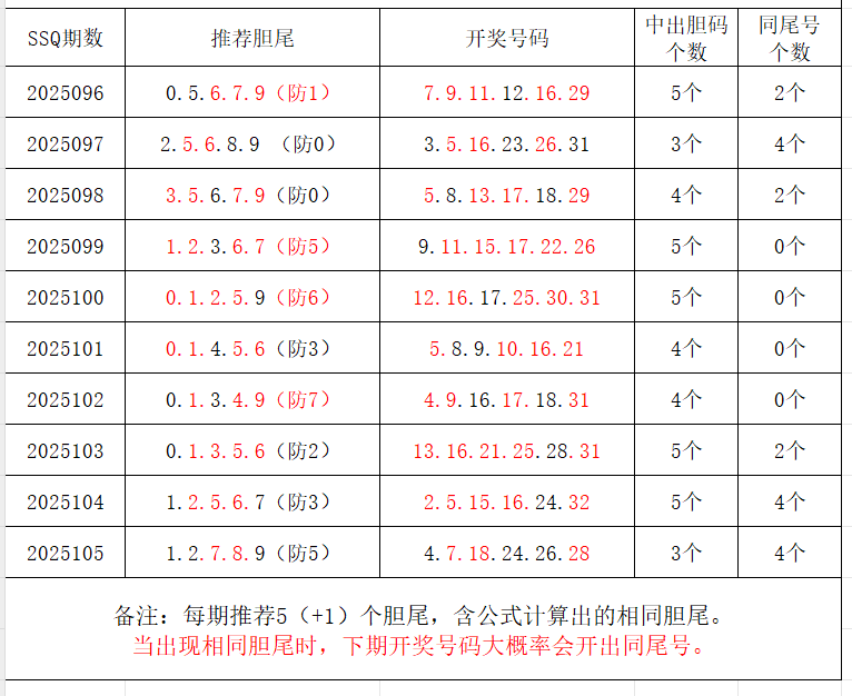 如图,每期推荐胆尾中出1-4个。上期推荐胆尾中出3尾3码!推荐胆尾是按照公式计算的顺序,不定位红球号码的顺序。本期推荐胆尾:6尾/2尾/1尾/9尾/0尾 。加推重点胆尾:***(会员专区可见)。推荐胆码号码:***(会员专区可见)。个人分析,仅供参考2