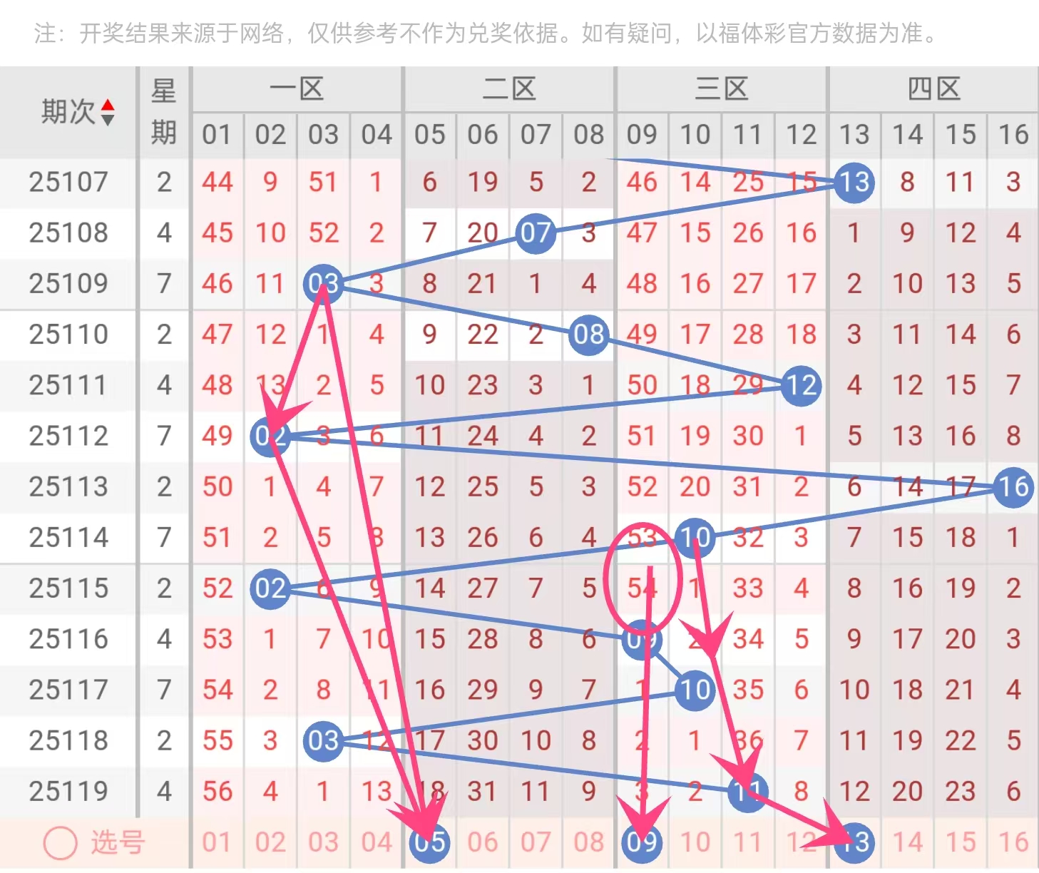 04号:前端号码04显示出明确的回补信号。经过充分调整后,该号码的各项技术指标均显示反弹在即。作为前区偶数代表,04号的开出有望重新激活03-05区段的活力,与08、14等号码形成良好互动。从热力传导角度看,04号正处于温度回升的关键节点,具有重要的战略意义。