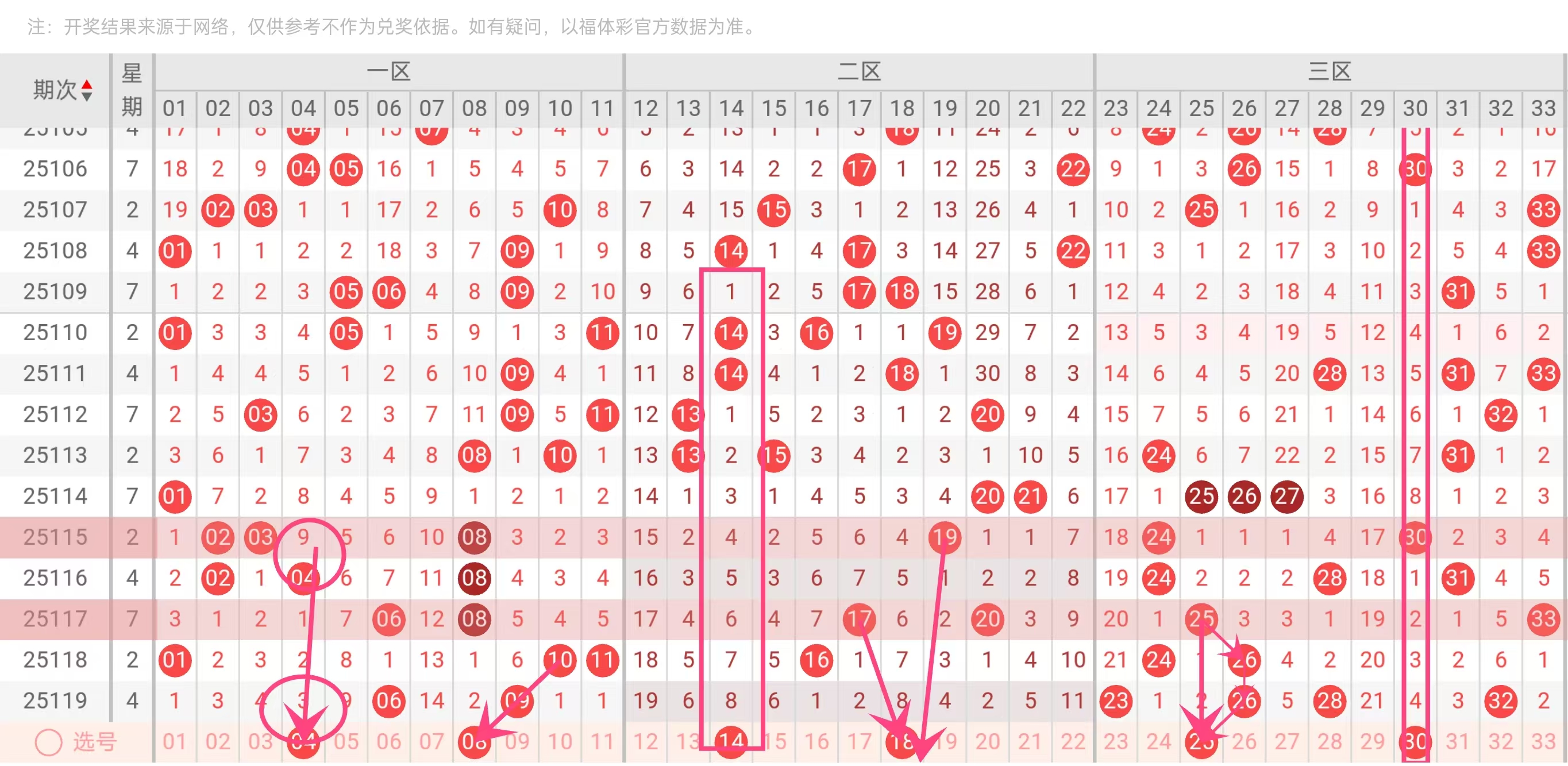 25号:后区重要节点25近期表现异常活跃,已成为后区最具潜力的热点之一。其成功带动了23-26区段的整体温度上升,展现出强大的辐射能力。走势形态分析表明,25号的热度具有较好的持续性,是构建后区组合的核心选择。从组合概率看,25号与30号存在较强的正相关性。