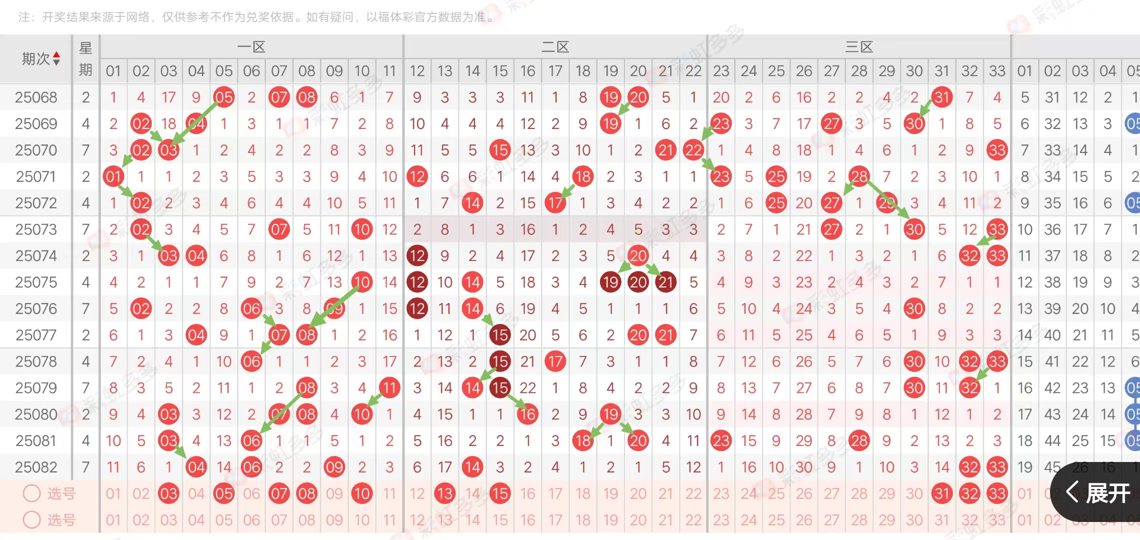 (三区:一区1-11,二区12-22,三区23-33)上期三区比3:1:2