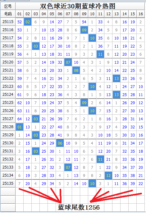 蓝球本期有热蓝7枚,冷蓝9枚,蓝球冷码数量稍多。上期开出热蓝,由于近期蓝球冷热交替开出规律不明显,本期蓝球冷热难定。