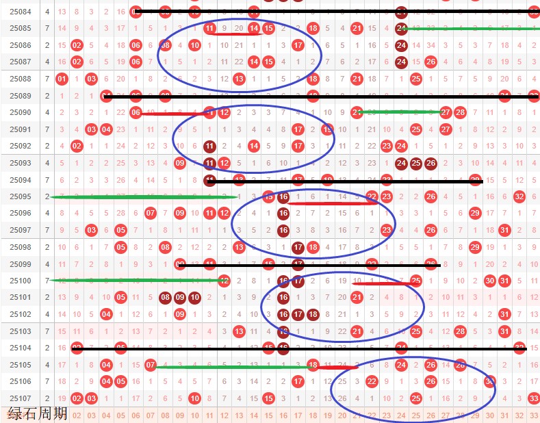 如图所示:体现的是3个局部走势的发展周期,圆圈为密集处的填空,本期定性为新局部走势5期结束期,主力填空第3期。架构填空第2期。定性本周期蛋跨为20-30,真实空间为7-17,预估蛋跨2-3枚带重,大号多开或者大小均衡。