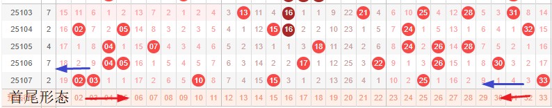如图所示:首尾制约平衡组范围依次为:缩拉缩,拉拉? 本期形态范围优先选择红色压缩首尾。由于上期号码已经进入新走势第4期,目前处在2连,利用平衡起号开出压缩和左推即为走势正反方向。