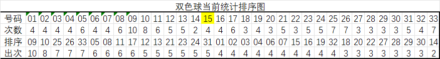 红球15码大底统计顺序:09,10,25,26,05,08,11,13,23,24,31,01,02,03,04