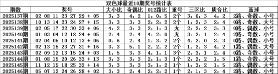 上期蓝球开出2路、偶数、小号:02,近10期蓝球012路比为4:2:4,奇偶比为5:5,大小比为4:6,本期蓝球注意号码06、07、08、12、13。