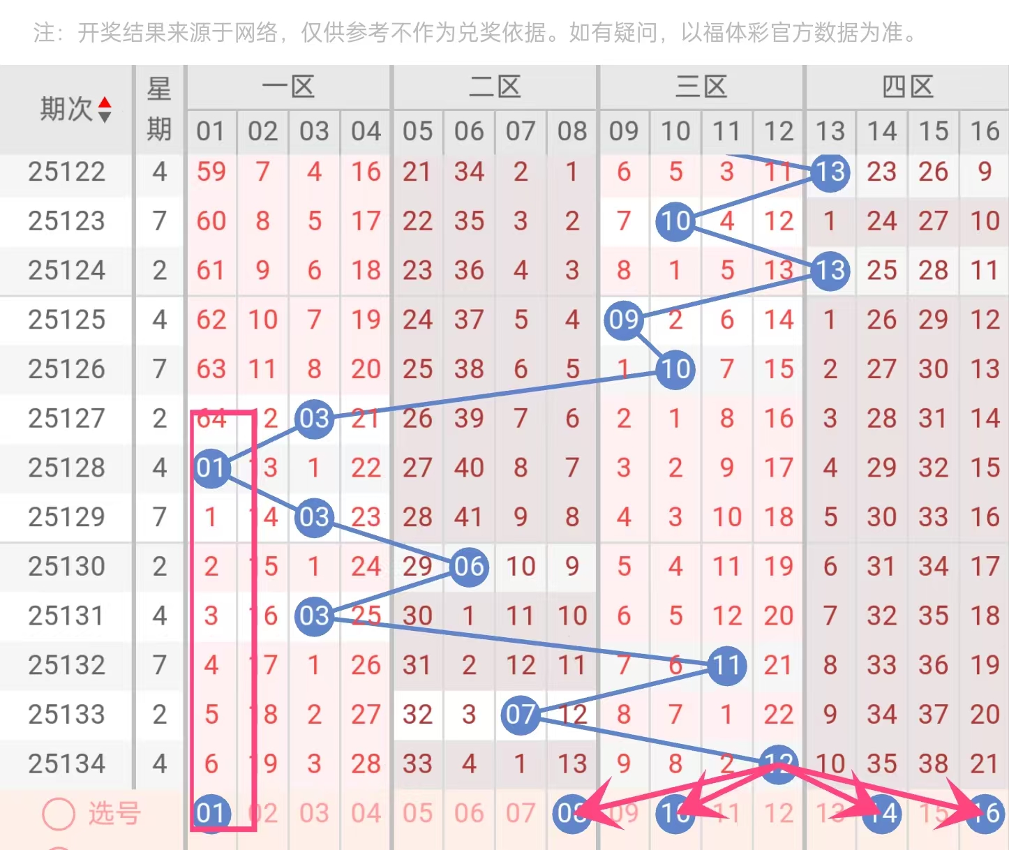 推荐5个蓝球:01、08、10、14、16