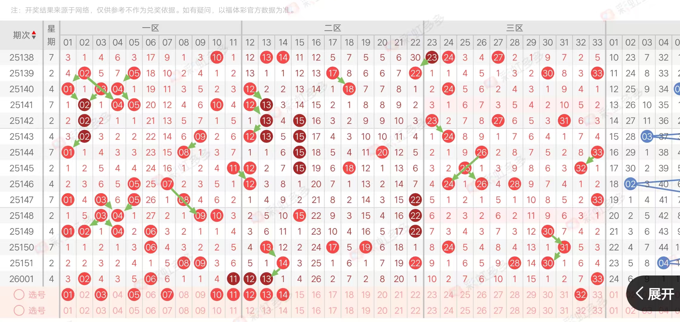 (三区:一区1-11,二区12-22,三区23-33)上期三区比3:2:1