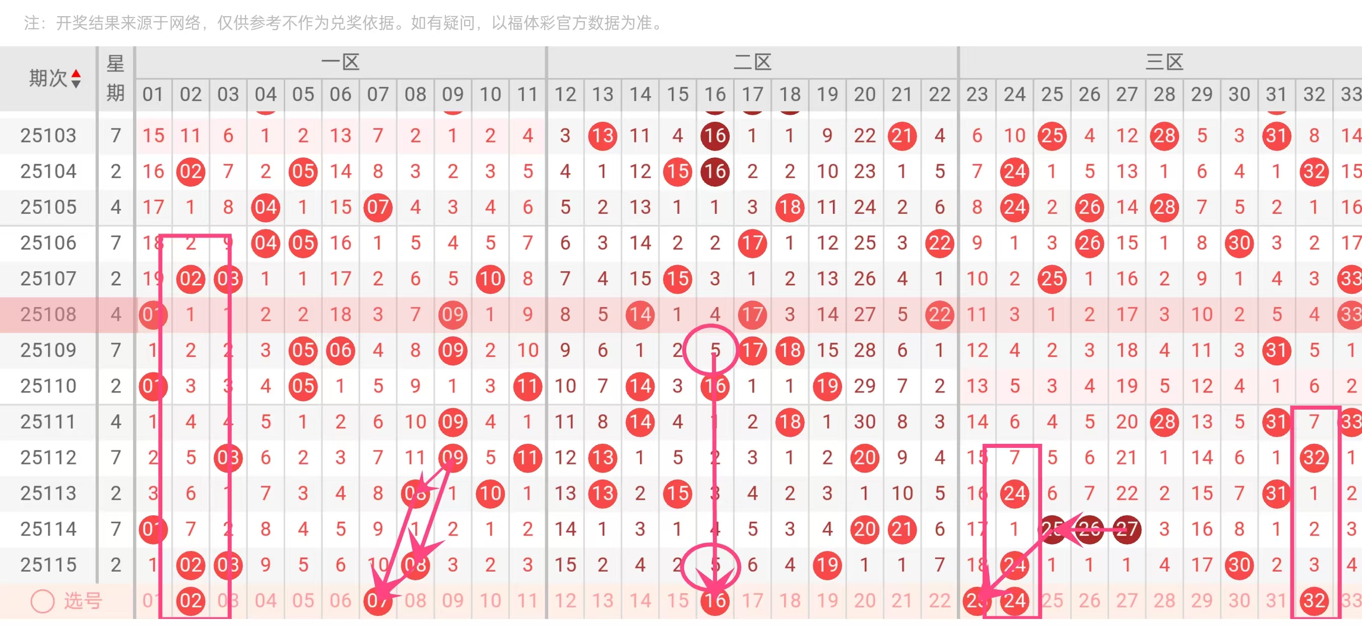 21号球:中后区过渡号码21近期出现明显的"失联"状态。其作为二区与三区的重要连接点,未能有效传递热度,与前后区域的联动链条出现断裂。从开奖分布看,19-22区间整体表现平淡,热点明显向17-19和23-25两个方向聚集,21号处于相对尴尬的位置。