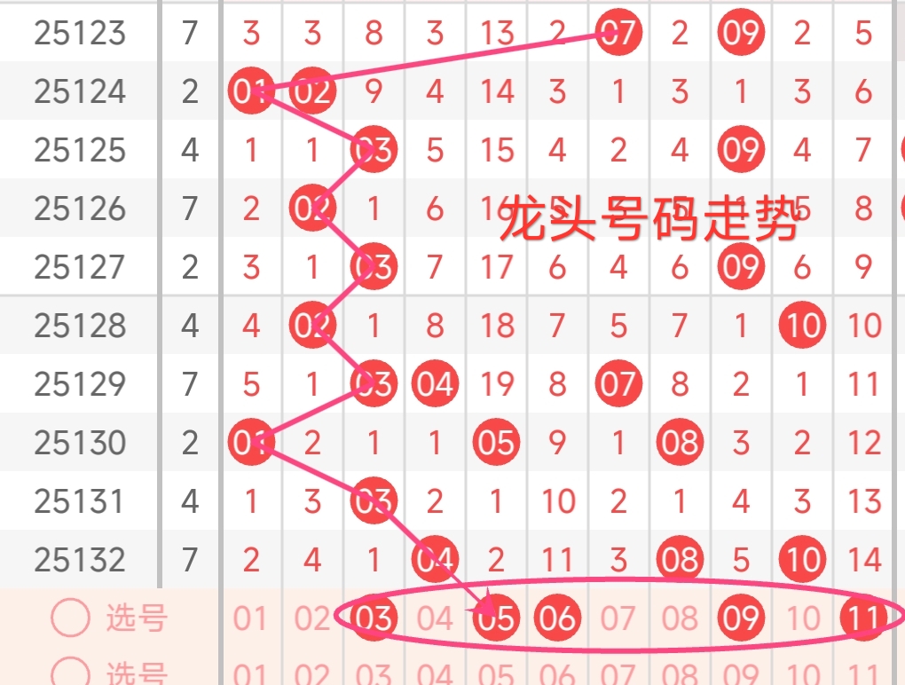 上期龙头号码为04,振幅上升了1点,开出偶数号码。从近期龙头号码走势来看,近期龙头号码波动频繁。上期龙头号码为 04,为偶数号码。从近期龙头号码的走势来看,近期龙头号码开出多为小数号码区域,近期龙头号码多在01 - 07之间,波动开出,预计本期龙头号码可能会有所上升开出,预计本期龙头号码可以重点关注01-11区间。本期还需关注遗漏值较高的号码,本期有望龙头号码热出的区域。综合考虑,本期龙头号码可重点关注03、05、06、09、11。