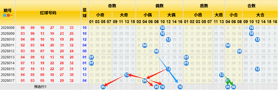根据蓝球近十期数据统计:小奇数出现2次,大奇数出现1次,小偶数出现3次,大偶数出现4次,小质数出现2次,大质数出现1次,小合数出现3次,大合数出现4次。再来看历史数据统计,小奇数出现861次,大奇数出现861次,小偶数出现816次,大偶数出现867次,小质数出现1060次,大质数出现418次,小合数出现616次,大合数出现1310次,从上述数据可以看出小奇数、大偶数、小质数、小合数历史数据占优,上期命中合数和偶数,结合近十期数据对比,本期可能要出现质数回补的局面,故本期结合上述数据并根据斜率对称原理看好05 08 10 16 04 06