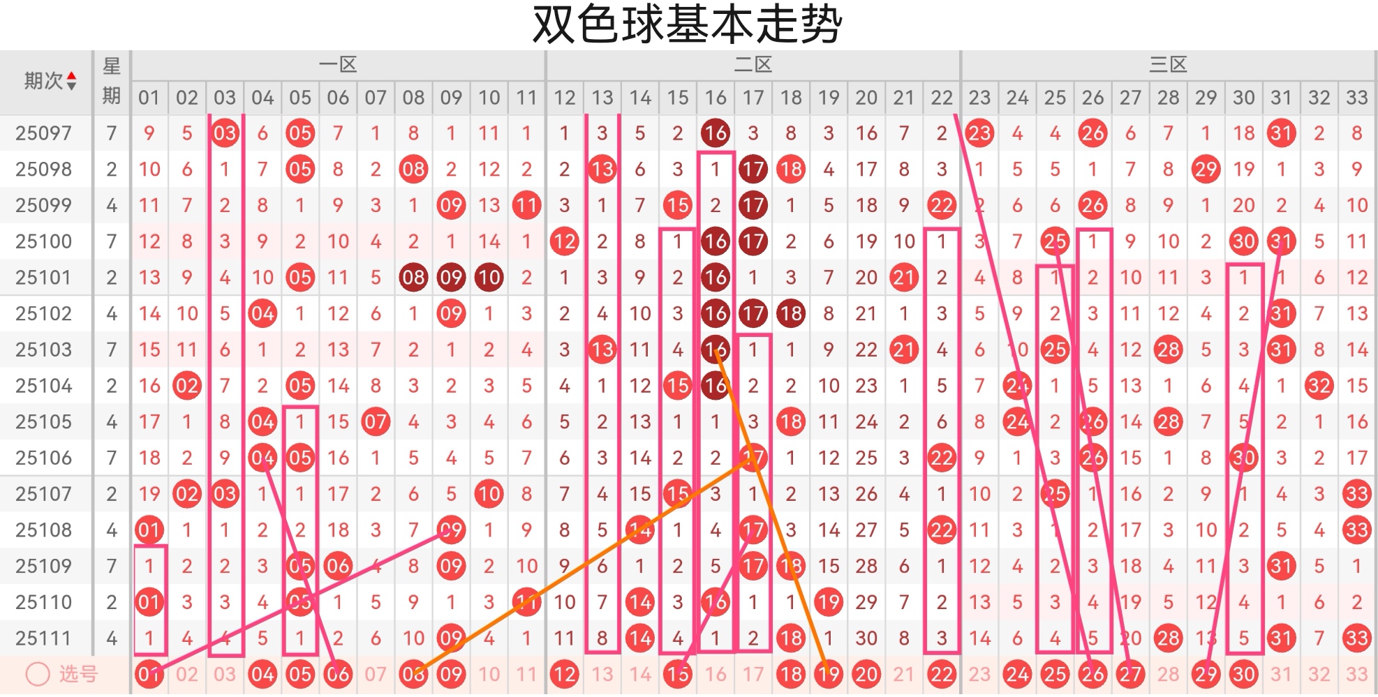 双色球25112基本走势分析如下