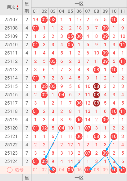 根据走势图可以看出当区段, 115期开出来02.03.08三个号码球,116期开出来02.04.08三个号码球,117期开出了06.08二个号码球,118期开出了01.10.11三个号码球,119期开出06.09二个号码球 ,120期开出01.02.04.07四个号码球 ,121期开出06.08.10三个号码球 ,122期开没有出号码球 ,123期开出07.09二个号码球 ,124期开出01.02二个号码球 ,按照如此规律本期当前区判断可能会开出1单或2单。我们看下当前区上期没有开出重叠号,那么本期当前区要定重叠号的情况下可关注02号码球。再看下当前区段上期没有开出斜连号,当期选号得留意03斜连号。建议重点关注03.05.07.10.11