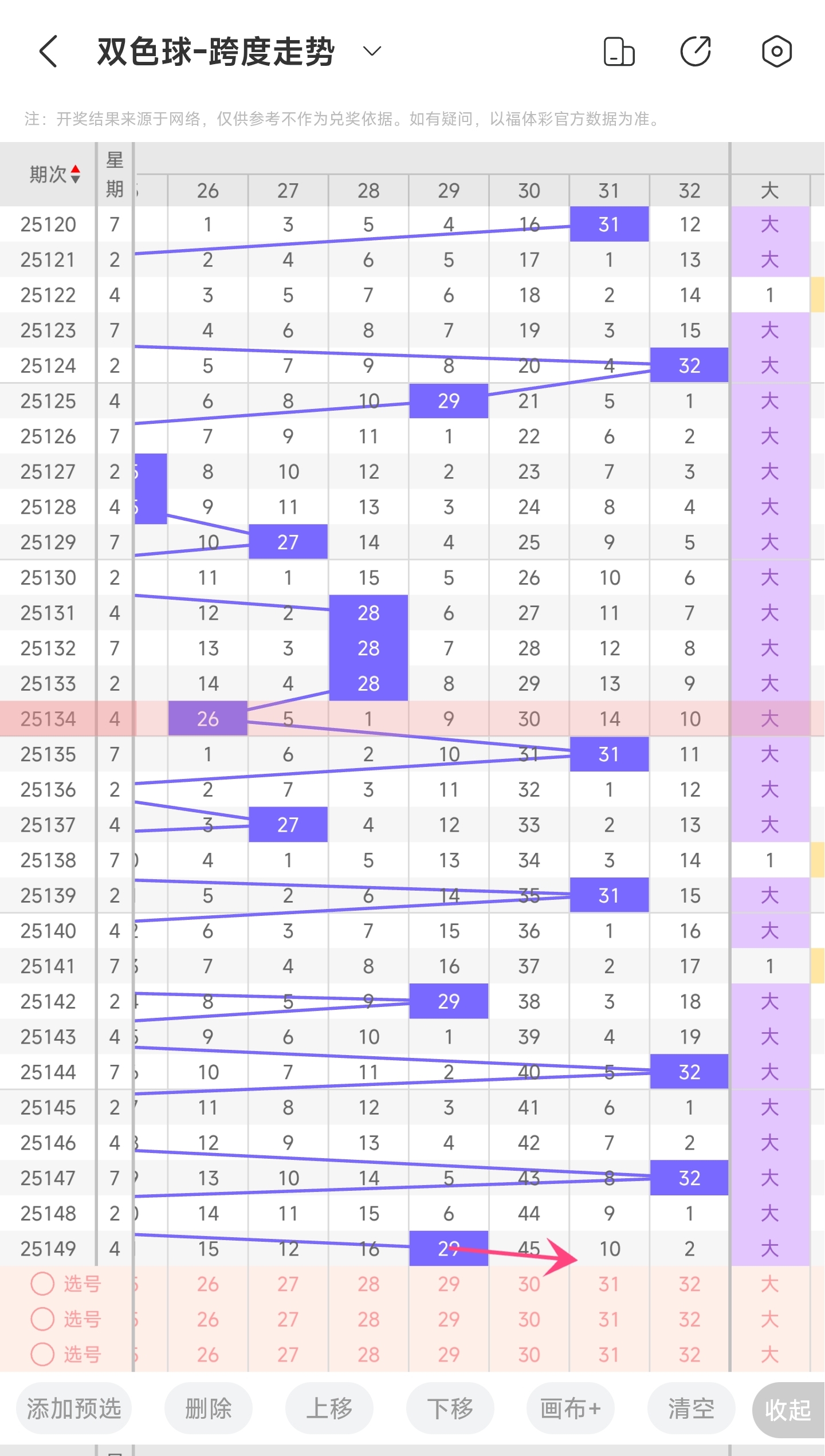上期开出的是10,往前一期开出的是16。趋势往左偏移,偏移量为6,偏移量比较大。通过分析目前蓝球的走势图,目前的趋势是明显往左的,小概率往右。从偏移量来看,最近几期偏移量都是比较大的,本期还是重点关注比较大偏移量的号码,再防1码小偏移量的号码。同时最近冷号回补概率比较高,注意一下。最后再结合遗漏期数,以及冷热号,本期我们可以关注1,3,4,9,15等号码。综上所述本期推测可能开出1,3,4,9,15等号码。