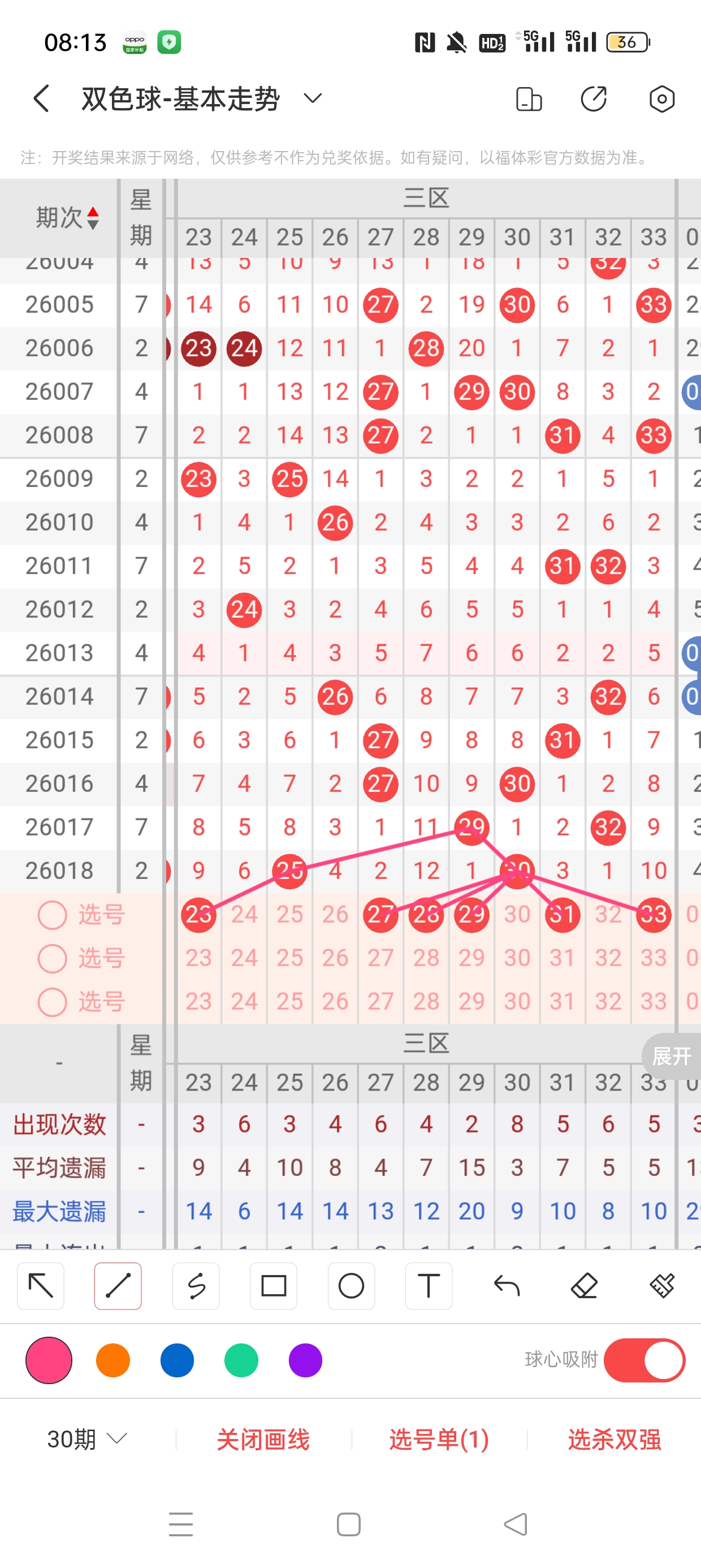 三区(23-33)近23期本区邻孤传6邻17孤0传,孤号热度高,本期着重邻传。近23期本区012路17:1:5,0/2路热度高,本着重1路。23已遗漏9期,与25之间呈现向左遗漏递减态势,需防。27、28、29分别遗漏2期、12期、1期,三者与30之间呈现向左遗漏递减态势,需防。31、33分别遗漏3期、10期,两者与30之间呈现向右遗漏递减态势,需防。