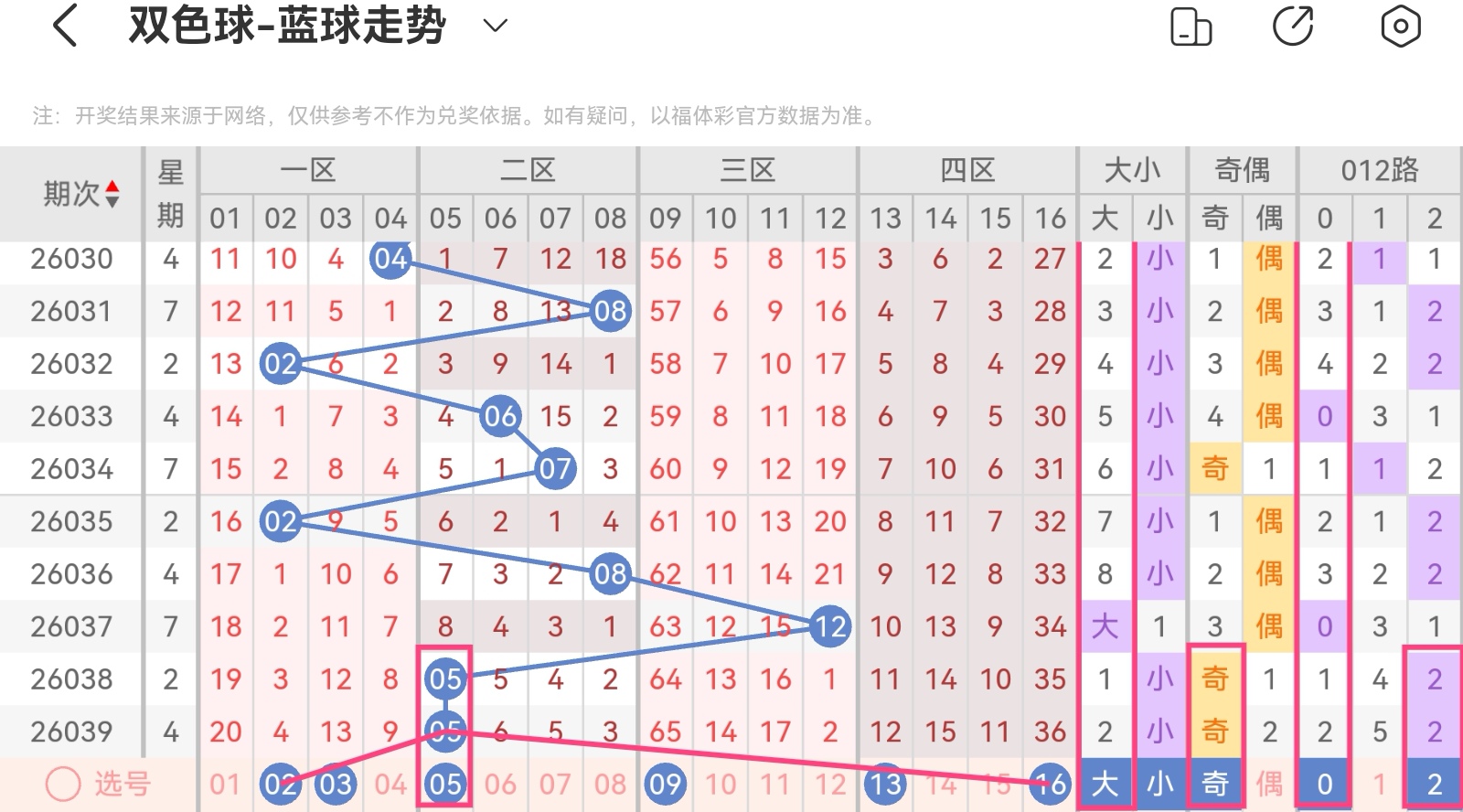 26038期:胆码二中一,重码二中一,杀十红错二,杀八蓝正确,五码围蓝正确,大底中4+1