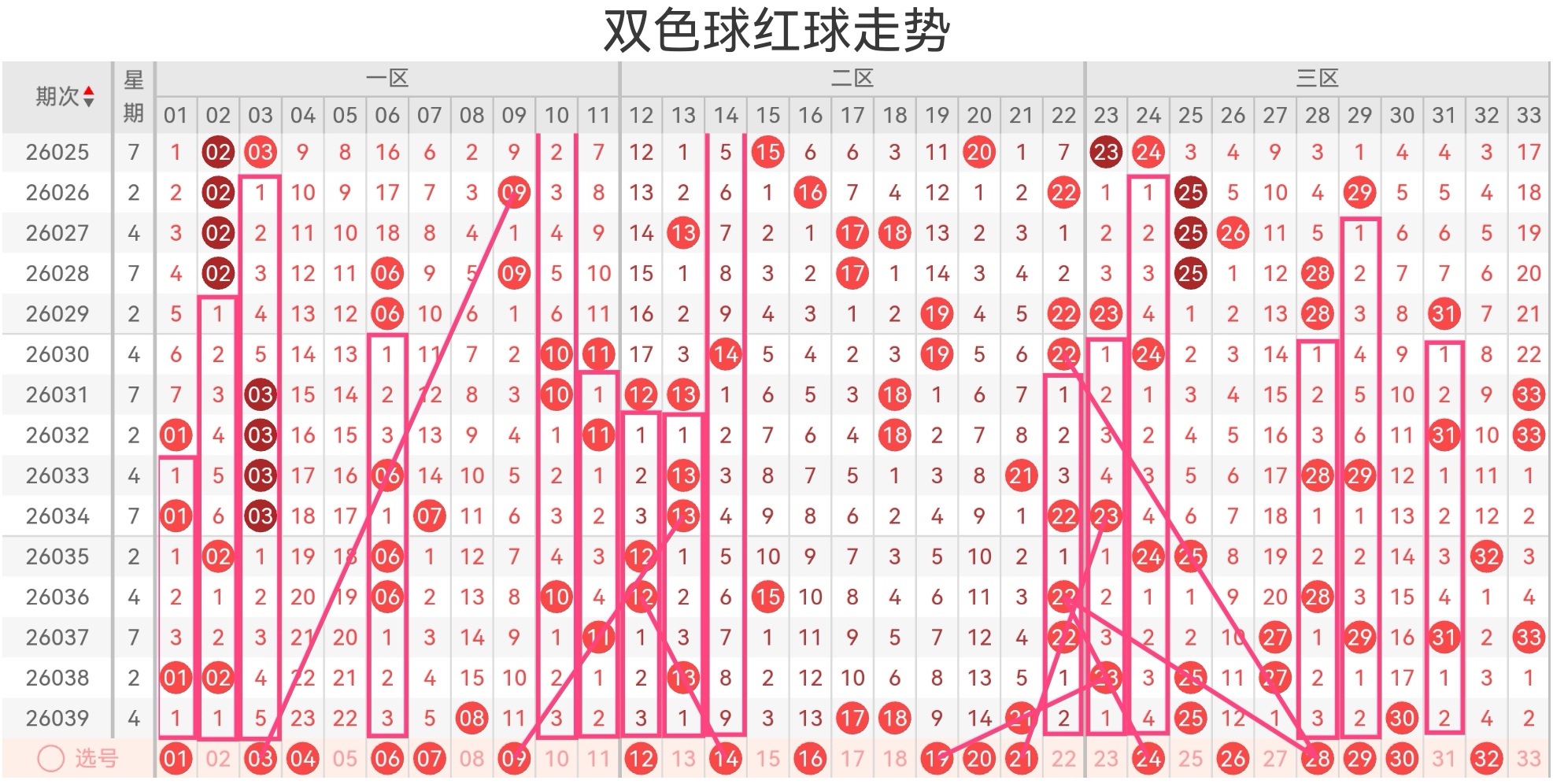 双色球第26040期基本走势分析如下:
