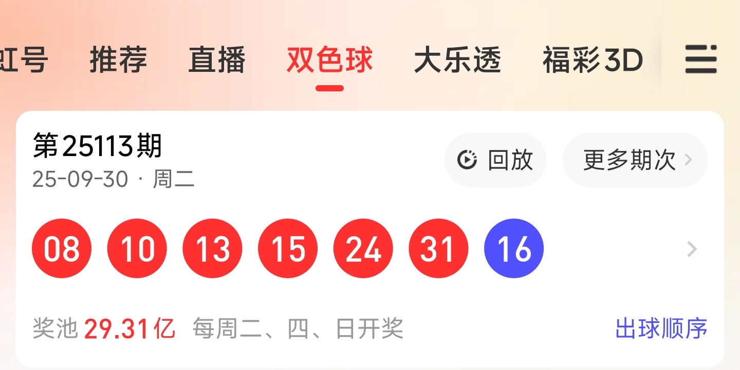 红球开出08,10,13,15,24,31。蓝球开出16。