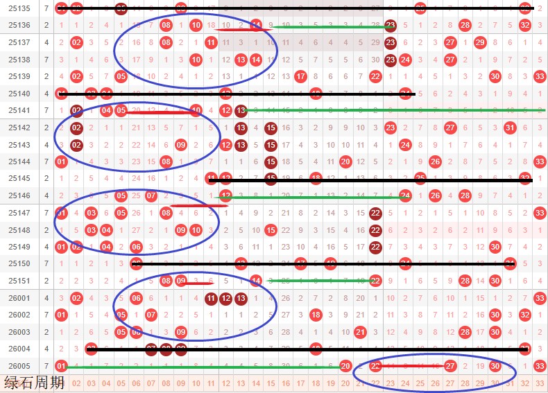 如图所示:体现的是3个局部走势的发展周期,圆圈为密集处的填空,本期定性为新局部走势3期,修饰真实目的空间,主力填空第1期,1本期修饰绿色线,是平行填1枚还是多填3-4枚即为走势正反方向,具备发起走势大号需要3枚,代表本期大号多开,1-20空间预估2枚以内。