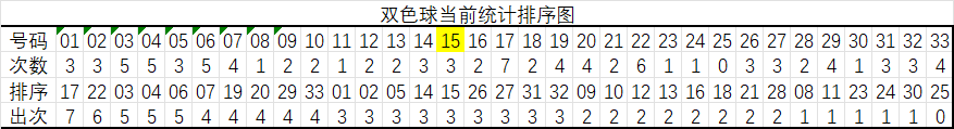 红球15码大底统计顺序:22,04,07,19,20,29,33,02,05,14,15,26,27,31,32