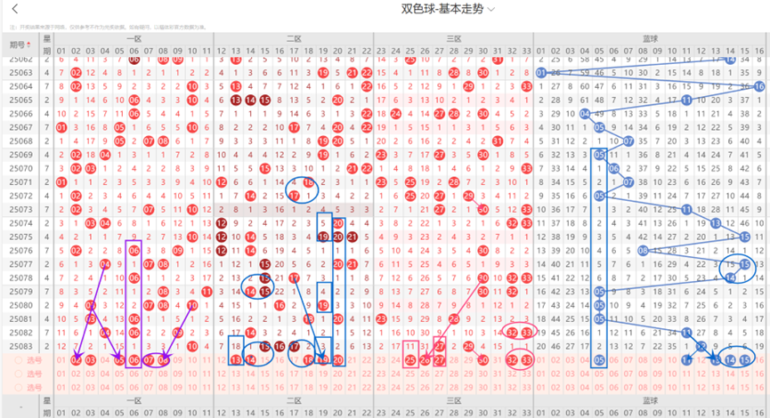 上一期三区开出了2个号码;本期三区大概率不会断区,本期三区出号数量看好2个,防1个;本期三区需要关注的号码:26遗漏值较高;27可能会重开;30为邻号;32-33为隔期码;因此本期三区选号应该考虑26-27-30-32-33等号码。