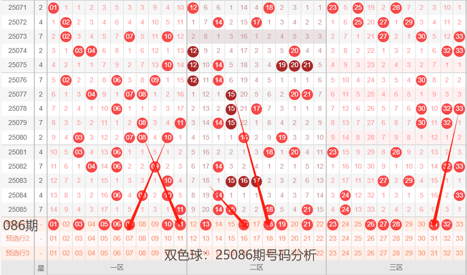 双色球:25086期号码落位分析(上期4+0)