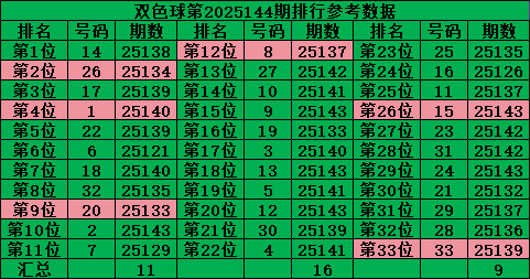 以双色球自开奖以来每个号码出现的次数排位,可分为冷热温三区: