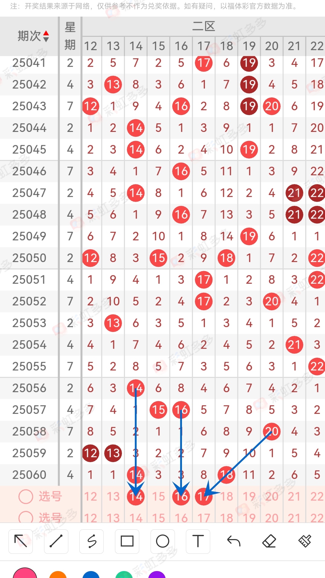 第二区间(12 - 22):14、18号球为中热号码,19、17号球持续遗漏 。连号策略可关注14 - 16或17 - 18组合,推荐组合14、18搭配16、17号球,同时留意14 - 16 - 18偶数链的联动效应 。中热号码有出现可能,遗漏号码也可能表现,偶数链联动提供选号参考。