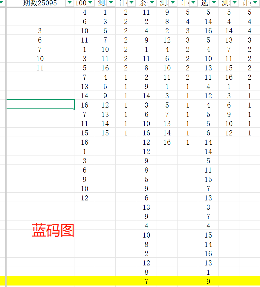 首先可以看一下蓝码的对比结果通过两个图表数据的对比,我们把蓝码的范围确定为3 6 7 10 11