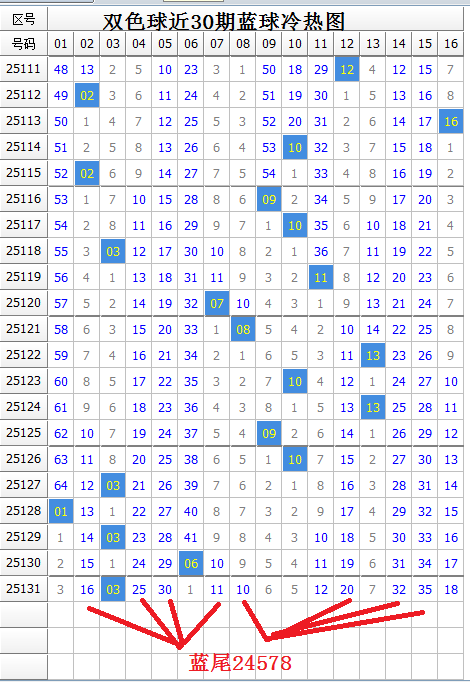 蓝球本期有热蓝6枚,冷蓝10枚,蓝球冷码数量稍多。上期开出热蓝,由于近期蓝球冷热交替开出规律不明显,本期蓝球冷热难定。冷码可能性大些。