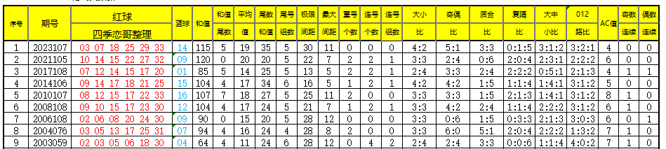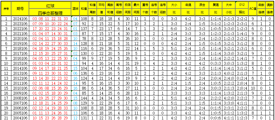 附:2003年起每年106期开奖号各类数据及9月14日同期开奖号各类数据,供大家参考!大佬和彩友们速速拿走~