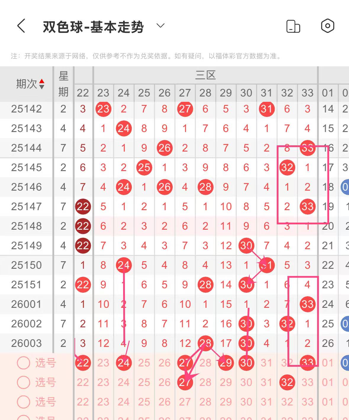 (注意大底出来可以不按位置选号,这里我是结合三区比,奇偶比,012路比选择看整体走势如斜连,连号,重号,跳号等)