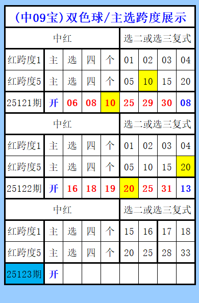 双色球第123期图文(中09宝),主选跨度