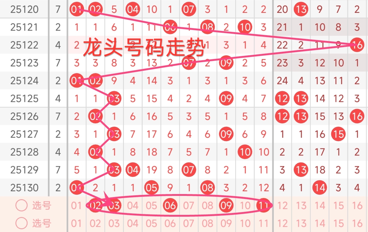 龙头号码走势分析: