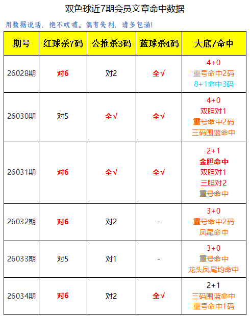 上期杀7码对6,公推杀3码对2,后区杀号全对。