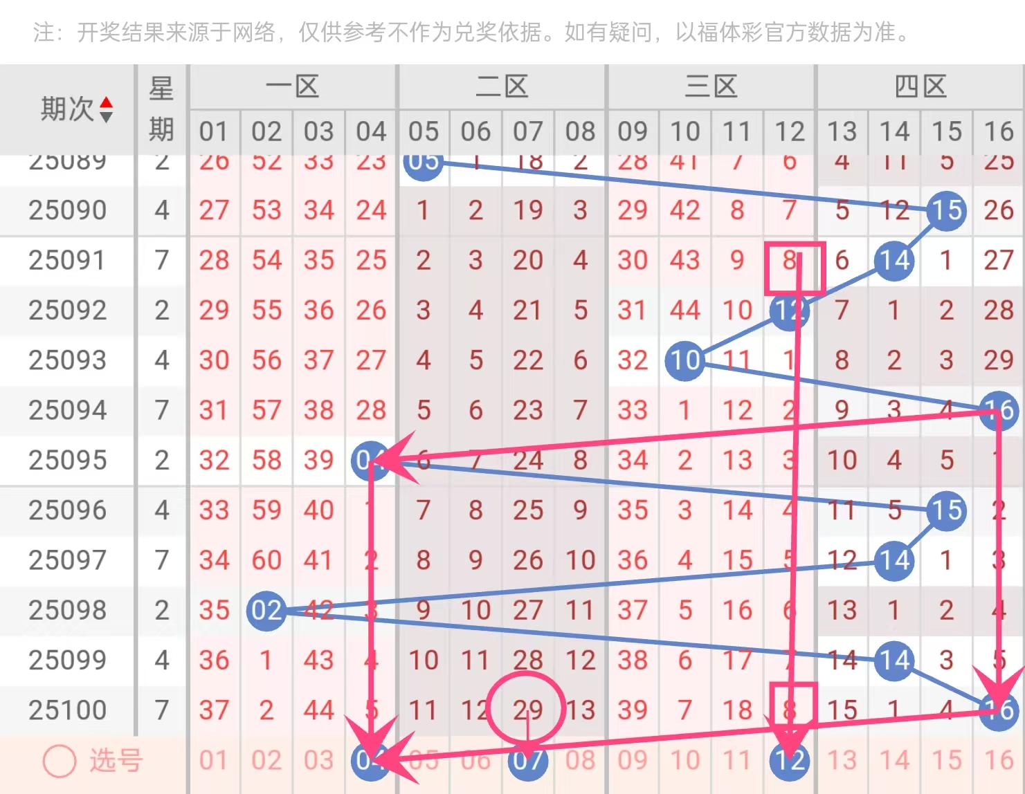 08(温号):一区关键过渡号,已遗漏8期达回补临界点,与06形成理想搭配