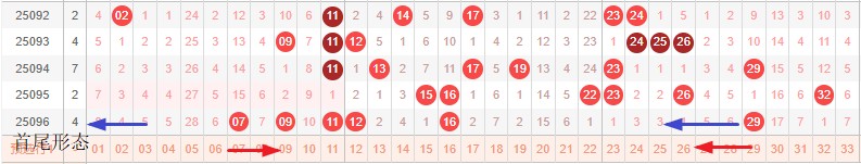 如图所示:首尾制约平衡组范围依次为:推推推,推推? 本期形态范围优先选择蓝色左推首尾。由于上期号码形成2连带3连分割第2期形成形态在分割2组连号,是利用是号码左推形成压缩或者左推首尾的小尾,还是强势3区,形成右推首尾,即为走势正反方向。