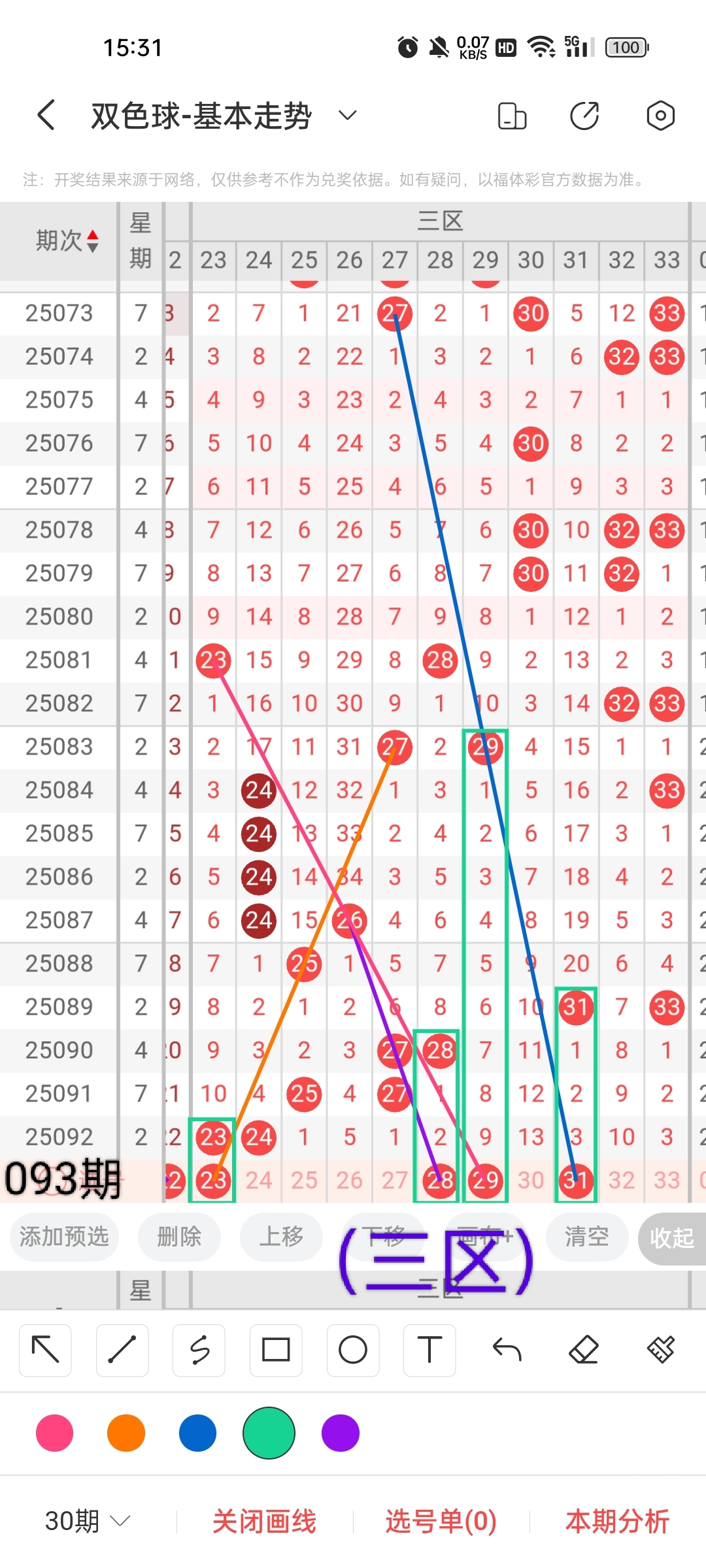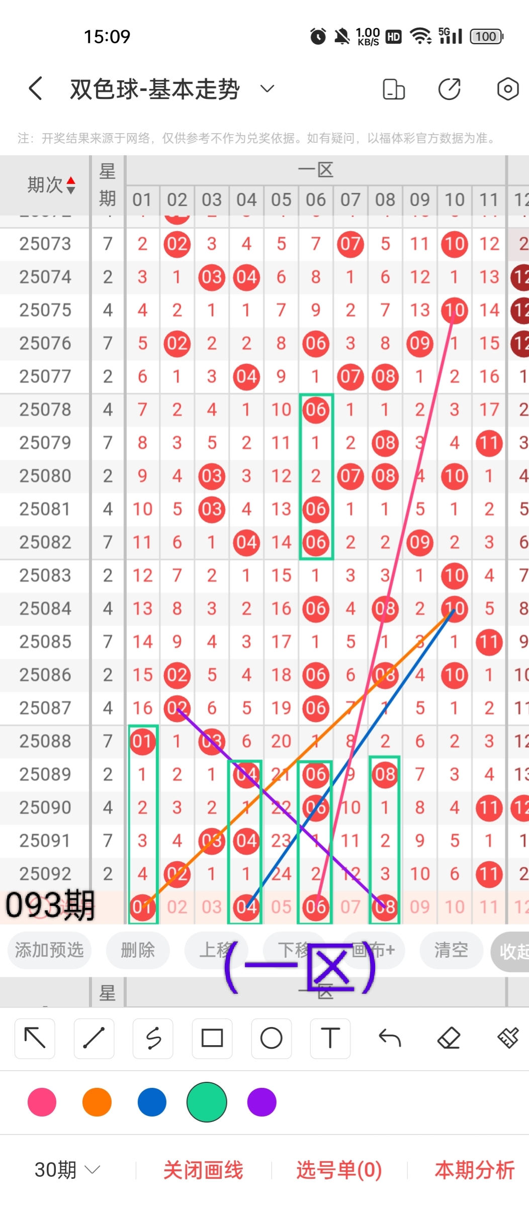 通过以上对上期的简单回顾,下面进入双色球第2025093期(下面简称本期)的选号分析: