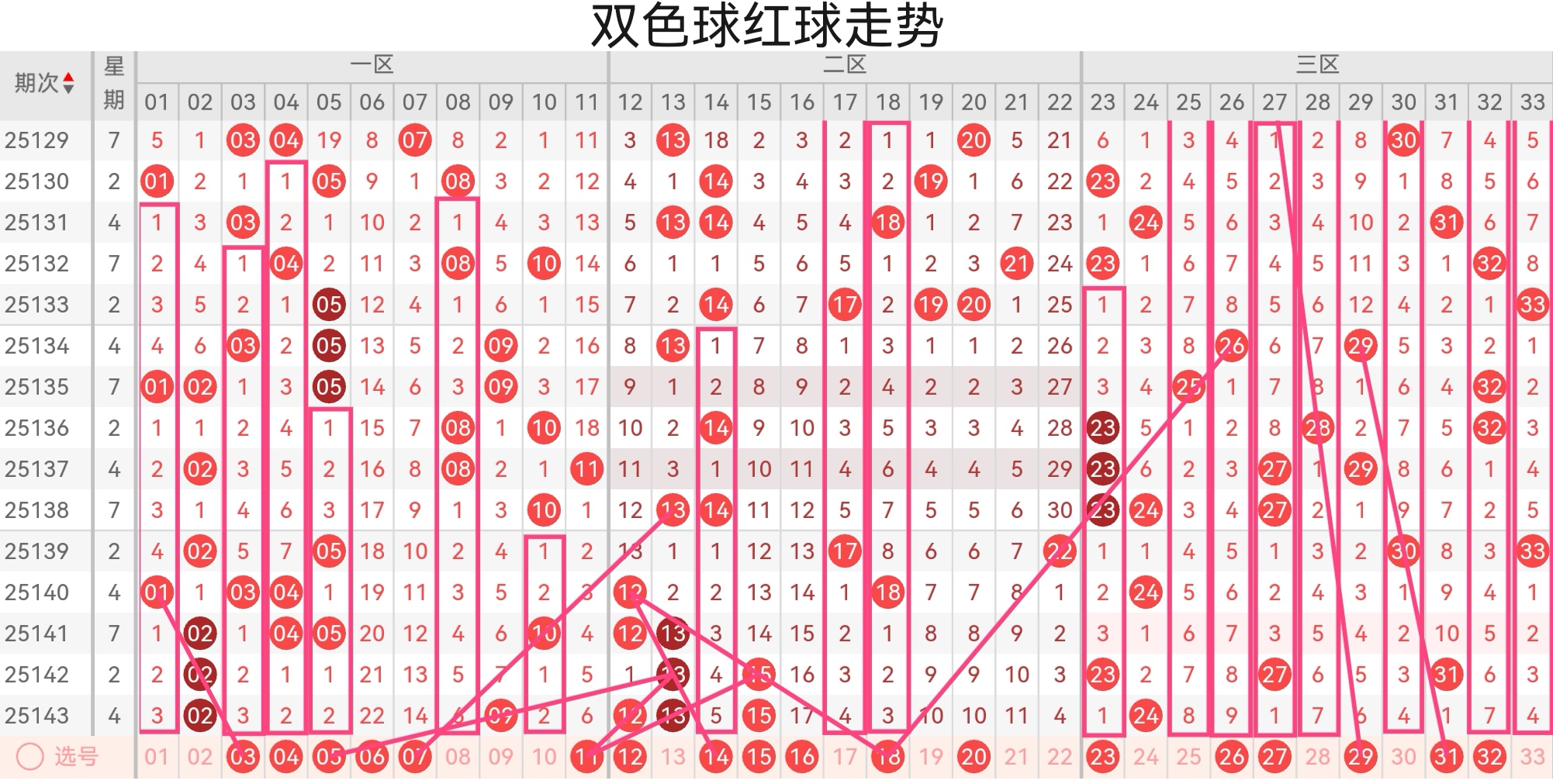 双色球第25144期基本走势分析(上期会员文章重码二中二,三码围蓝中,杀八蓝对)