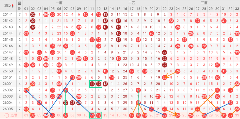 根据以上特点,我们对双色球第26006期进行如下分析: