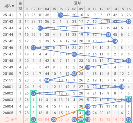 近期大号趋势强劲, 本期~,蓝球推荐关注号码:02、05、08、09、16。