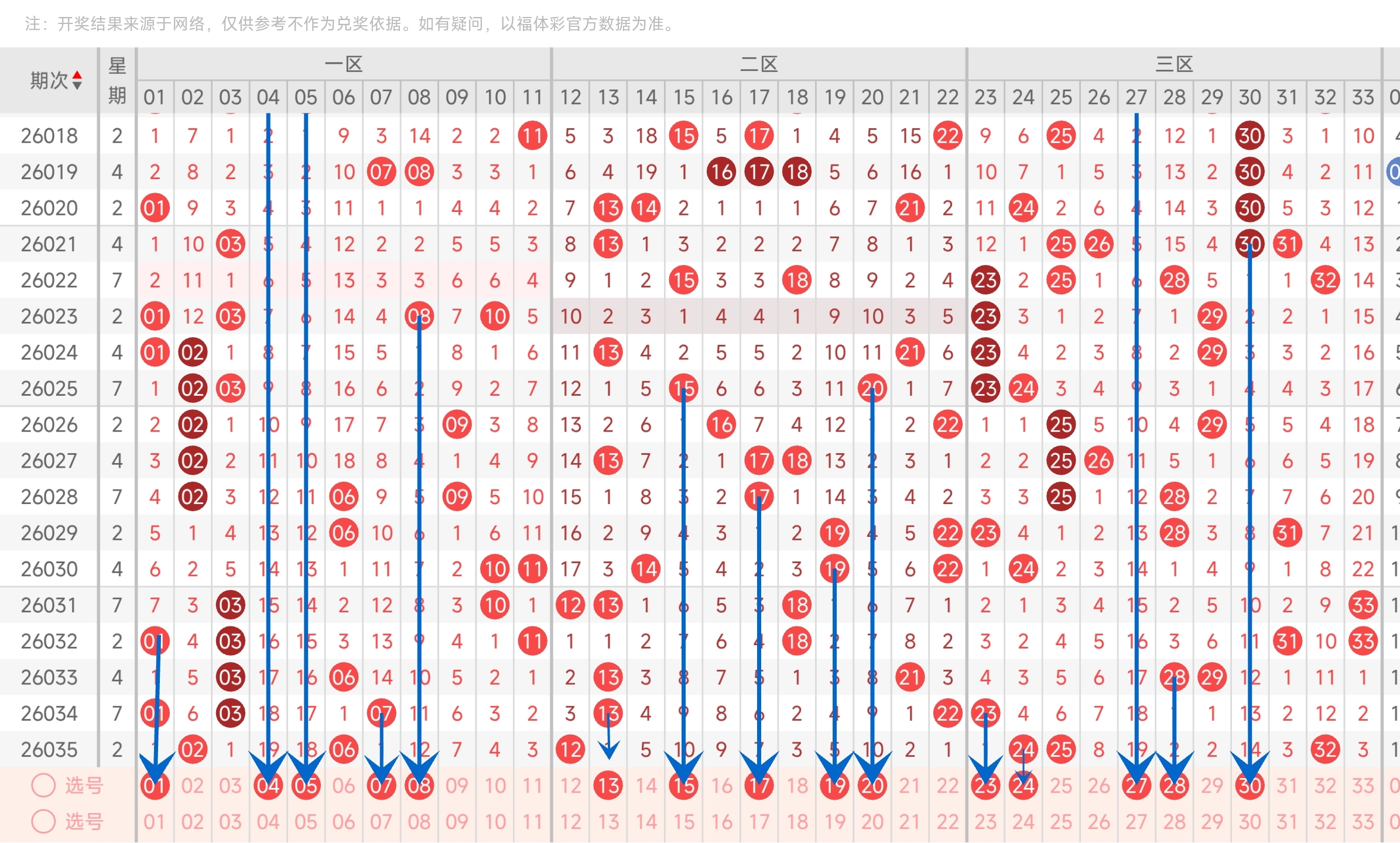 第26031期双色球文章中推荐中命中3,10,33等3个红球,蓝球命中8。