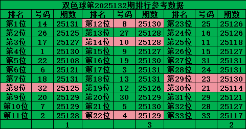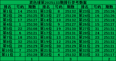 综上所诉,双色球第2025133期号码推荐: