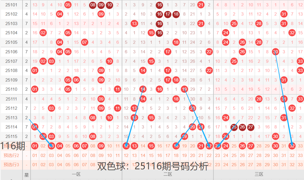 先介绍下上期开奖号码的基本情况,红球奇偶比:2:4,区间比:3:1:2,012路比:3:1:2,通过上期号码简单介绍,分享下25116期号码球个人认为的出号可能,供大家参考!