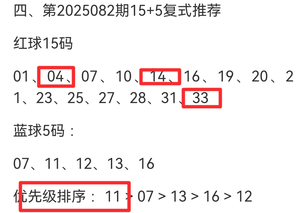 四、第2025083期15+5复式推荐