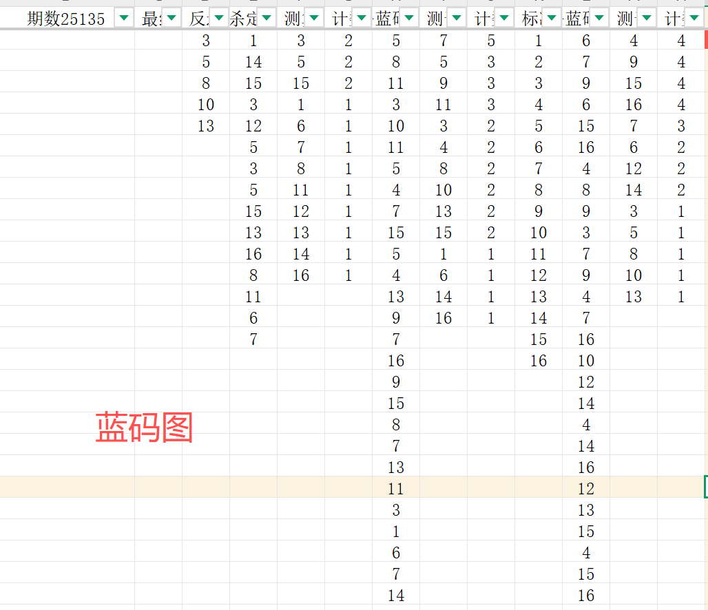 首先可以看一下蓝码的对比结果通过两个图表数据的对比,我们把蓝码的范围确定为3 5 8 10 13