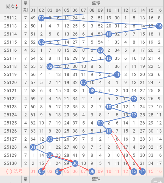 根据走势图近10期的走势看,蓝球在107期开出13蓝球之后,3小1大1小2大1小2大1小1大2小5大4小,再看下近10期的蓝球热码有回补的趋势,这种趋势规律本期判断极有可能开出双号,本期防蓝球13大号,蓝球本期重点关注02,04,08,13,14