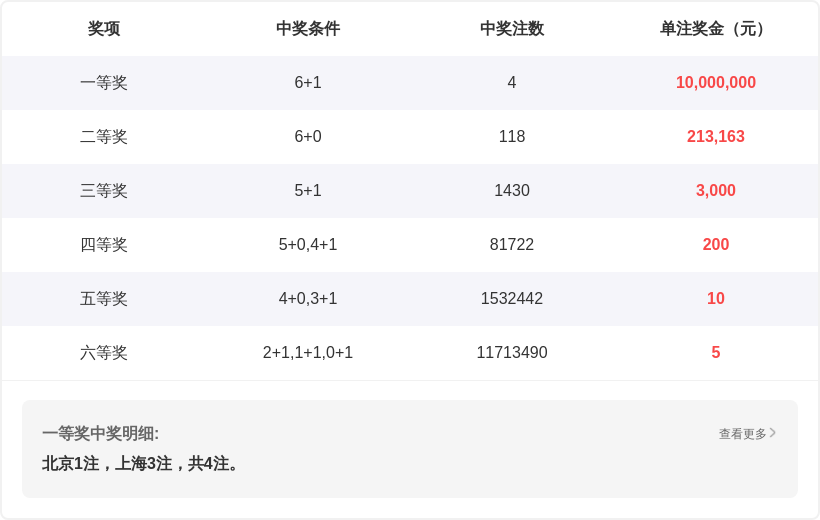 | 25107 | 02 03 10 15 25 33 + 13 | 3:2:1 | 2:4 | 33 |